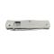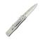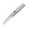 Ouverture par ergot de pouce. Manche en acier inoxydable et muni d'un clip de poche.
