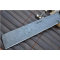L’acier damas utilisé est constitué de plusieurs couches et a été plié avec deux types d'acier (1095 et 15N25) plusieurs fois afin d’obtenir une pièce de qualité de 150 à 250 couches.