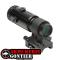 | Autres | Montage rapide "quick detach", levier pour pivoter la loupe sur le côté ; possibilité d'ajuster le dégagement de l'oeil / position pour s'adapter à différents red dot ou viseurs reflex ; réglage en hauteur et dérive (windage & elevation) pour aligner correctement le viseur rouge à la loupe. |