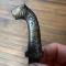 Fusée de forme zoomorphe tête de Tigre entièrement damasquiné D'or et d'argent : fleurs , voluptés et feuillages, fourreau également intégralement décoré de koftgari d'or et argent au même motifs et bouterole argent.