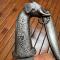 Fusée à pommeau sculpté de forme zoomorphe à tête d'Elephant entièrement damasquiné d'argent : fleurs , voluptes , motifs géométriques et feuillages, fourreau également intégralement décoré de koftgari argent au même motifs .