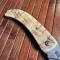 COUTEAU ARTISANAL CORSE ENTIÈREMENT FAIT MAIN EN CORSE MANCHE EN MAGNIFIQUE CORNE DE BÉLIER LAME FORGÉE DANS UN SUPERBE DAMAS