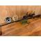 Le boitier de culasse le pontet ainsi que le montage de la lunette sont entièrement gravés jaspés. L'inscription de la position de la sécurité "SAFE" est en lettres dorés. La calotte de la poignée est également gravée jaspée et comporte un petit magasin avec un guidon de rechange. Cette carabine a une longueur totale de 120 cm et pèse 4.5 kg sans la lunette, la crosse sans joue a une longueur de 36 cm ( du sabot à la détente).