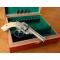 Magnifique et superbe coffret en bois en excellent état d'occasion et de bonne qualité de fabrication, Réservé pour un revolver Calibre 32 court S&W -- Safety First Model -- Surtout bien se fier aux dimmensions données avec précision: Longueur intérieure= 20,5cm -- Largeur intérieure utile hors rampe et hors emplacement goupillon= 10,5 cm -- Epaisseur intérieure utile= 5,00 cm -- Etat quasi-impeccable intérieurement et extérieurement, avec quelques micro-traces à peine visibles -- une Rampe de 12 orifices pour Cal: 32mm court -- Vous pouvez si vous le désirez, finir d'agrémenter ce dernier selon vos idées et vos goûts --Poids à vide sans armes ni munitions= 0,985kg avec les 3 goupillons neufs offerts, vous pourrez rajouter 1 goupillon metallique, ceux ci sont pour la finition du nettoyage de votre arme et se prêteront à plusieurs grosseurs de calibres!!