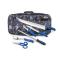 La malette du poissonier 6 pièces de Fischer est origine France. Il permet une grande sécurité pour une utilisatin optimale. Composition : lame en acier inoxydable, manche en bi matière bleu. Caractéristiques : 1 dénerver 20 cm manche bi matière + 1 désosseur 11 cm manche bi-matière + 1 couteau poisson cranté 42 cm manche bi-matière + 1 ciseaux poisson massif + 1 écailleur professionnel + 1 fusil ovale 30 cm manche bi-matière - taillage fin. - Fabrication : France