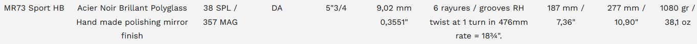 Revolver MANURHIN MR73 SPORT HB 5"3/4 Cal. 357mag