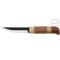 Sa lame est forgée en acier au carbone, et son manche de bouleau traité thermiquement et de bouleau madré, lui apportant une belle finition bicolore.