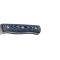 Une lame en acier M390 Böhler stonewashed forme Drop Point (dureté 61-62HRC). Manche en micarta bleu denim avec vis en acier inoxydable.
