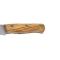 Une lame en acier M390 Böhler stonewashed forme Drop Point (dureté 61-62HRC). Manche en bois d'olivier avec vis en acier inoxydable.