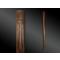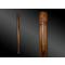 Casse-tête en bois monoxyle dont la tête est plate, travaillée en un décor en cartouches – dont l’un est doté d’incisions horizontales et également pourvu de deux légères protubérances rectangulaires – lui conférant des traits anthropomorphes.