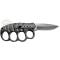 Couteau pliant à lame acier inoxydable, agrémenté d'un poing américain au niveau de son manche. La lame se replie intégralement dans la base du poing, pouvant alors s'utiliser en self-défense. Léger et maniable, il dispose d'un clip d'attache à la ceinture.