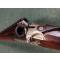 Crosse et devant en noyer poncé huilé, crosse anglaise, quadrillage demi-fin, plaque de couche caoutchouc avec basane cuir, longueur 379mm, pontet long