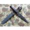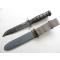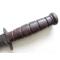 MK2 KA-BAR avec marquage sur garde. Ce type de poignard a été adopté par l’US Navy en avril 1943, c’est le modèle produit par Camillus Cutlery Co qui remportera le 1er contrat pour l’US Navy. Pour atteindre les quantités nécessaires, il sera aussi produit par 3 autres fabricants durant la WW2, Pal Blade Co, Robeson Cutlery Co et Union Cutlery (Ka-Bar). Ka-Bar sera le fabricant qui produira le plus de variantes durant le conflit. D'après le livre de Bill Walters, le plus récent et le mieux documenté sur le sujet, il y aurait 9 versions MK2 pour l'US Navy, 13 versions USMC Fighting Knife pour l’USMC, 6 versions avec marquage KA-BAR sans marquage d’unité et 4 versions « stérile », sans aucun marquage. Cet exemplaire est la 2ème variante de KA-BAR avec le marquage sur la garde mais encore avec le pommeau épais maté sur une sortie de soie rectangulaire. La dernière version aura un pommeau plus fin et goupillé. Ce poignard est en très bon état et les photos participent à sa description. La lame a sa longueur, sa largeur et son profil d’origine, pas de choc, pas de de dent, pas d’oxydation, parkérisation d’origine encore présente à 80%. Quelques traces d’affutage sur un côté de la lame. La poignée cuir est complète, en très bon état, sans manque ou rondelle craquée, pas de jeu dans les rondelles, très léger jeu latéral à la garde. Le fourreau est un USN MK2 plastique, adopté en novembre 1943 et livré d’origine avec les MK2 à marquage sur garde. De par son numéro de contrat au dos, 4723, il a été produit entre novembre 1943 et juillet 1944. C’est le 1er contrat pour ce type de fourreau. Il a quelques traces d’usage.