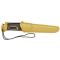 Mora a également pensé que votre couteau doit être solidement attaché et pour cela il a inclus une cordelette d'environ 47cm. L'étui en plastique complète l'ensemble. Manche noir/jaune au toucher très agréable et anti-dérapant.