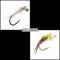 5553-2 : Nymphe courbée très légère et classée comme nymphe imitative. Modèle inspirée de la célèbre « Pheasant Tail ». Montage avec corps en faisan. Bille et cerclage en cuivre pour garder un aspect neutre. Ajout d'un thorax en fibres synthétiques couleur olive pour assurer de légers reflets et mettre en évidence l'imitation. Nymphe d'ensemble proposant un aspect naturel.