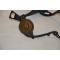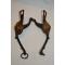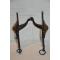C'est un mors de troupe, court ( hauteur 20 cm) à canon brisé. Le métal a été peint en noir. Les bossettes en laiton, de 80 mm de haut et 55 mm de diamètre sont bien montées d'origine. Il manque la barre ou chaînette inférieure.