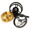 Pour faciliter l'extraction de la bobine, pour la changer ou, dans de rares occasions pour défaire un emmélage dans les engrenages, le démontage de la bobine se fait à la main par l'intermédiaire de 3 vis moletées. Construit entièrement en Aluminium, il est usiné à partir de barres pleines, par commande numérique dernier cri. Son revêtement par anodisation dure permet de protéger l'aluminium des griffures et des petits chocs. Ce LYBERTY NYMPHE 75 est facilement réversible Droitier / gaucher, il suffit pour cela d'avoir un tournevis cruciforme et 5 minutes devant soi.