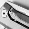 Couteau EDC high-tech qui se glisse dans votre poche sans difficulté, son design et son élégance s'accordent avec sa robustesse, le manche est donc monobloc gràce au système SOLID de Lionsteel en titane anodisé gris 6AI4V et brise-vitre au bout du manche en carbure de tungstène.
