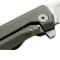 Lame forme Drop Point en acier inoxydable autrichien fritté M390 avec finition Stone Washed très résistant à la corrosion. Le flipper est amovible, système de roulement à billes Double Crown ( deux rangées de roulements à billes tournent autour du point de pivot) qui maintient la lame plus stable et offre un mouvement très fluide.