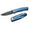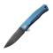 Couteau EDC ou de collection high-tech qui se glisse dans votre poche sans difficulté, son design et son élégance s'accordent avec sa robustesse, le clip de poche bleu est SOLID de Lionsteel en titane anodisé 6AI4V est vissé sur la monture en titane par un brise-vitre en carbure de tungstène.