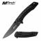 Système de sécurité framelock. Dimensions : 11,43cm fermé. La lame 8,89cm finition noire. Lame drop point en acier 3Cr13 finition noire. Pivot de la lame sur roulements à billes BALL BEARING PIVOT. Manche acier noir avec insert fibre de carbone. Ouverture avec l'index & le pouce. Clip de poche. Trou pour dragonne.