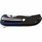Dimensions : 12,06cm fermé. La lame 8,25cm finition satin. Lame drop point acier 3Cr13. Ouverture avec l'index & le pouce. Trou pour dragonne. Clip de poche. Lame montée sur pivot avec roulements à billes. Manche aluminum blue et fibre de carbone.