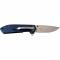 Dimensions : 12,06cm fermé. La lame 8,25cm finition satin. Lame drop point en acier 3Cr13. Lame montée sur pivot avec roulements à billes. Manche acier Blue TiNi avec insert black G10. Ouverture avec l'index & le pouce. Trou pour dragonne. Clip de poche.