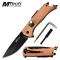Dimensions : 12,06cm fermé. La lame 8,25cm finition noire. Lame drop point en acier 3Cr13. Manche en bois naturel pakkawood. Ouverture avec l'index & le pouce. Brise vitres. clip de poche. Lampe-Torche, ouvre bouteilles, et allume feu.