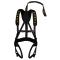 Harnais avec un solide cordon d’accrochage pour éviter les chutes, bretelles et ceinture rembourrées, sangles de fixation à la poitrine, boucles d’attache aux jambes réglables et silencieuses.