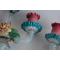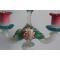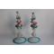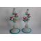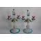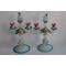 Paire de candélabres en verre soufflé polychrome de Murano surmontés de dauphins bon état, sauf un bras recollé et petit manque a deux pétales sur une fleur, voir photos