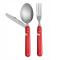 Une fourchette - Une cuillère et un couteau avec lame semi micro dentée.