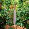 Le manche est façonné en noyer (Walnut) véritable, offrant une prise en main noble et ergonomique. Sa construction "Full Tang" (pleine soie) assure une solidité structurelle totale. Avec une épaisseur de lame de 0,25 cm, elle offre la flexibilité nécessaire pour encaisser les impacts répétés sans fatigue excessive. Elle est livrée avec une housse cuir artisanale de première qualité.