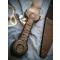 Customisé avec sa poignée recouverte de simili cuir pour plus de confort et incrusté de 4 symboles tête de mort, la peinture d'origine sur la lame a été enlevé et la lame bronzé à froid et peinte avec une finition effet de style argent antique.