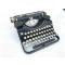 La firme UNDERWOOD a été créé en 1895 à New York et ses machines se sont vendues dans le monde entier jusqu’en 1960. Le fait que le nom d’Elliott Fischer figure sur la machine, permet de dater la machine entre 1927 et 19 35, ce qui est corroboré par le matricule (676555). A noter qu’Ernest Hemingway avait exactement ce modèle. Souvenons-nous également que durant la Seconde Guerre Mondiale, Underwood est chargée de la fabrication des carabines M1 pour l’armée américaine.