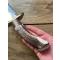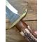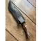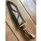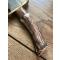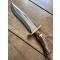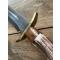 Le manche est fabriqué à partir de l'extrémité de la couronne d'un bois de cerf - avec une mitre en acajou. Il possède une garde en laiton coulé et poli à la main Une pièce unique par James Noble de Londres. Ce couteau est un monstre de 42 cm. C'est un couteau absolument exceptionnel qui impressionnera vos amis. Puissant, tranchant et d'une beauté à couper le souffle, il est parfaitement utilisable. Les mots et les photos ne peuvent lui rendre justice. C'est un monstre imposant et parfaitement équilibré ! Il est livré dans un étui en cuir fait main. C'est un exemplaire unique.