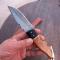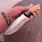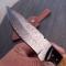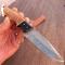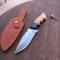 Magnifique Couteau de Chasse Damas Manche en Bois avec Étui en cuir
