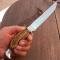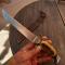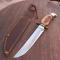 Magnifique et Grand Couteau de Chasse SABATIER avec Étui en cuir Manche en Bois de Cerf