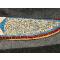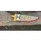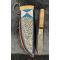 Très bel étui à couteau typiquement sioux motif salt and pepper ( poivre et sel) en fait un mélange de toutes les perles qu ils avaient . Accompagné d un très beau couteau d époque lame à double tranchant