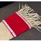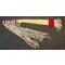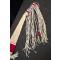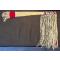 en peau de cerf , trade cloth (tissu de laine échangé aux indiens) et perlage en seedbeads, longueur hors franges 105 cm et largeur 7cm (petit côté) et 18cm grand côté.