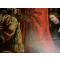 Drapé monumental du manteau rouge, construction volumétrique solide.