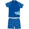 Marque : Playshoes Collection : 2014 Couleur : Bleu Matière : 82% polyamide, 18% élasthanne Protection : UPF 50+, 98% de protection UV Instruction de lavage : Lavage à froid ou à la main, pas de sèche linge Type de maillot : Ensemble haut et bas
