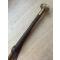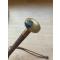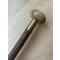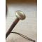 Fut en néflier scarifié, bois clair, pommeau clair, cuir tressé marron. Diamètre du pommeau : 36mm.