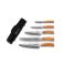 Cinq couteaux livrés avec une housse de transport.