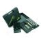 Ensemble de tir « Basic » pour armes à percussion composé de 40 éprouvettes à poudre en plastique 100 grains, d'une clé à cheminée munie d'un adaptateur pour cheminées de type « mousquet », d'une poire en laiton de forme tubulaire, d'une mesure à poudre et de 100 ml de solvant Solblack.