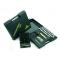 Set de rechargement pour armes à silex composé de 40 éprouvettes à poudre en verre contenant 100 grammes de poudre, d'une poire à pulvérin pour l'amorçage, d'une épinglette, d'une poire à poudre, d'une mesure à poudre et de 100 ml de solvant Solblack.