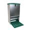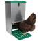 L'ouverture de la mangeoire se fait par pression sur la pédale, déclenchée par le poids de l'animal. Lorsque la volaille se présente devant la mangeoire, elle monte sur la pédale qui, sous l'effet de son poids, ouvre le compartiment où se trouve la nourriture. La pédale en grille plastique permet de faciliter le nettoyage et évite l'accumulation des fientes.
