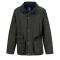 Manteau huilé vert olive, coupe classique avec fermeture zippée et boutons-pression, col montant en velours, doublure polaire intérieure pour plus de chaleur. Idéal pour la campagne et les sorties en extérieur.