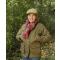 Manteau pour femme en tweed vert à motifs carreaux rouges, doublure chaude et coutures renforcées. Élégant, imperméable (traité Teflon) et pensé pour durer.