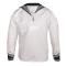 - manches avec poignet en bleu-blanc et boutons avec motif ancre en or