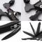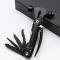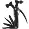 Les outils multifonctionnels comprennent un marteau plat, un marteau à cône, une pince, un coupe-fil, un couteau, un ouvre-bouteille, des couteaux dentelés, un tournevis droit, un tournevis cruciforme et une râpe.